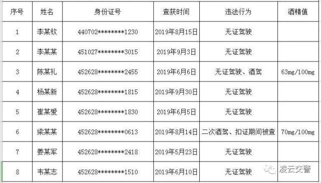 凌云交警曝光8名被执行行政拘留人员名单 有你认识的吗