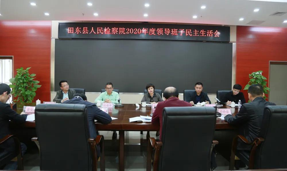 按照县纪委、县委组织部安排部署,2月7日上午,田东县检察院召开2020年度领导班子民主生活会。党组书记、检察长何耀林主持会议,百色市检察院党组成员、政治部主任蒙秀萍、县委政法委常务副书记韦定标、县纪委监委驻教育局纪检监察组组长陆德准、百色检察院政治部干部科副科长杨期琅等同志到会指导。县纪委监委驻县委政法委纪检监察组副组长黄少能同志到会监督。院党组全体成员参加会议,中层领导、党员干警和非党员干警代表列席会议。