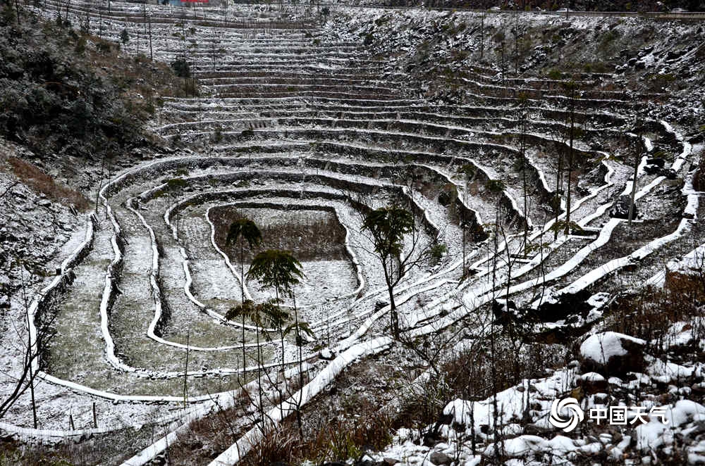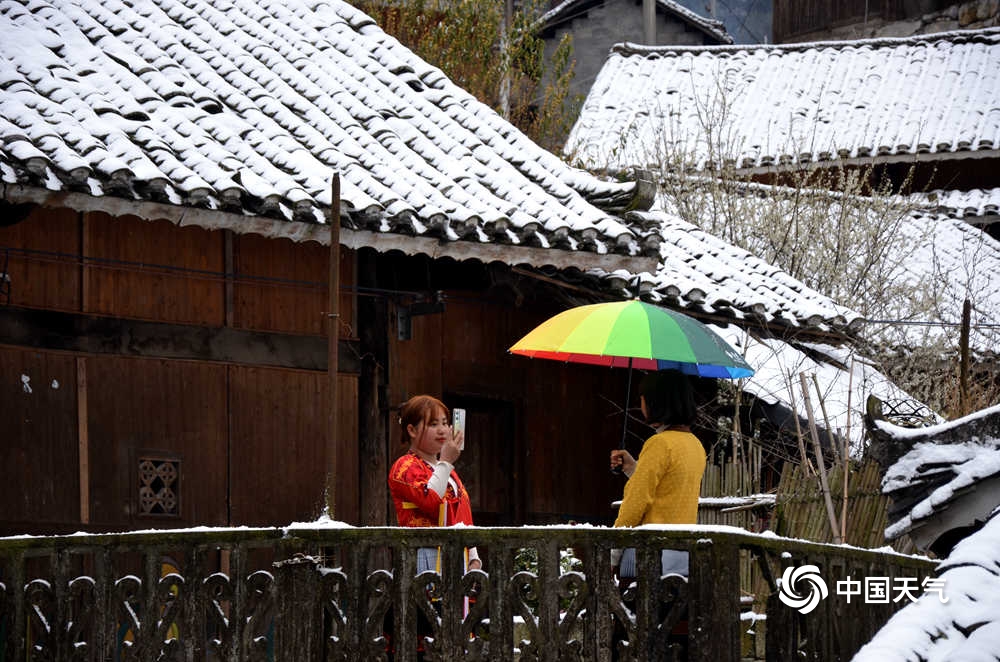 中国天气网讯 冷空气发威,2月20日凌晨,广西隆林乡村迎来一场降雪,房屋、村道、树林、麦田、山川全都覆盖了一层白雪,处处银装素裹,构成了一幅乡村雪景画卷。吸引了不少市民前来赏景。(图文/尹华军)