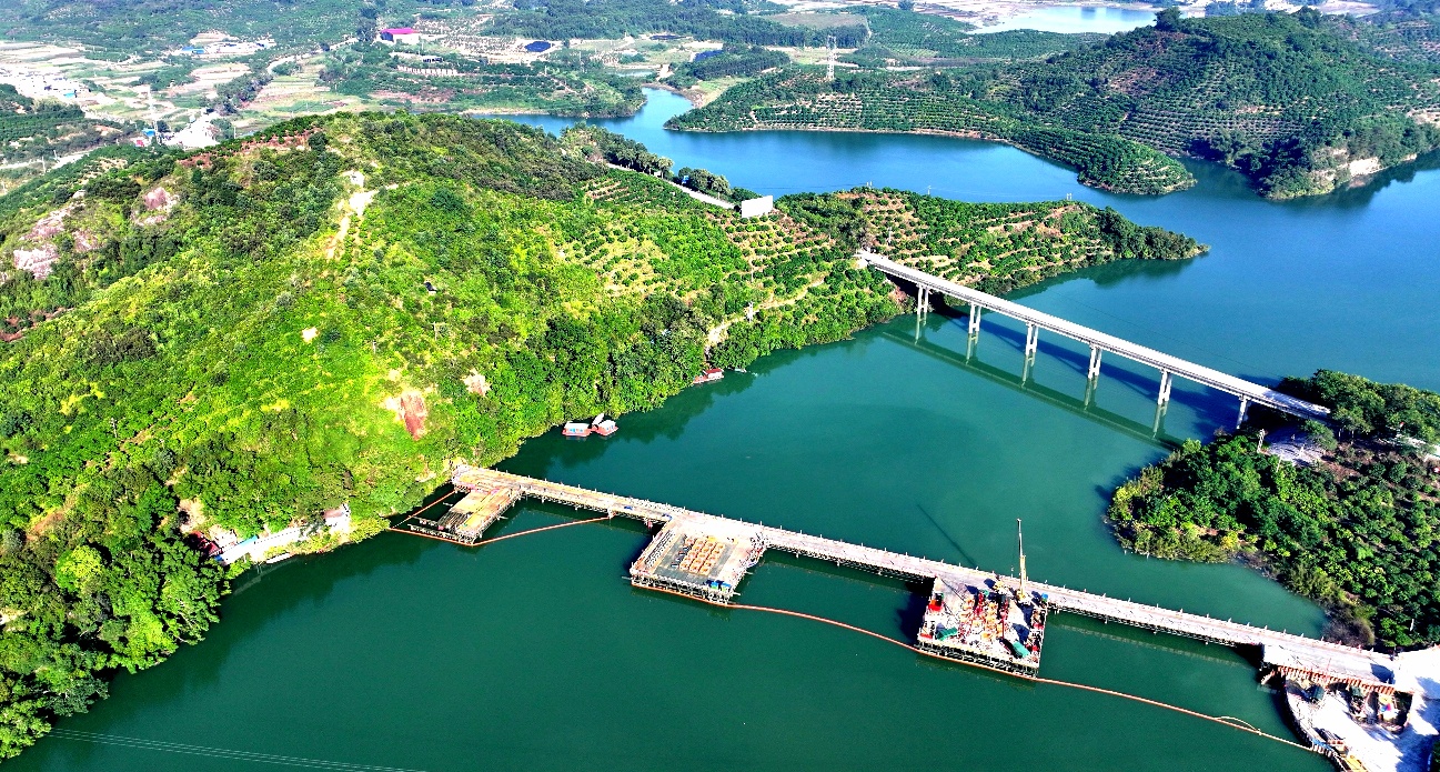 建设中的黄百铁路那蒙澄碧河特大桥。□本报记者 覃蔚峰 摄