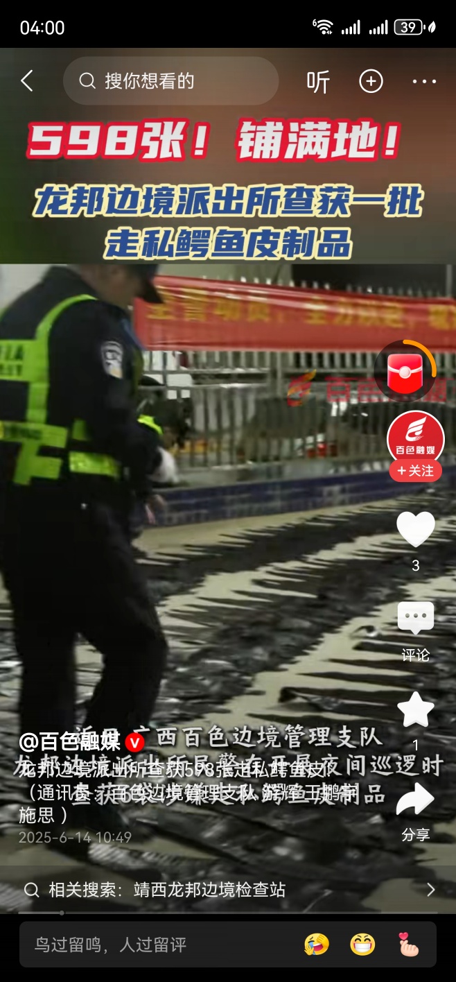 598张!铺满地!龙邦边境派出所查获一批走私鳄鱼皮制品。