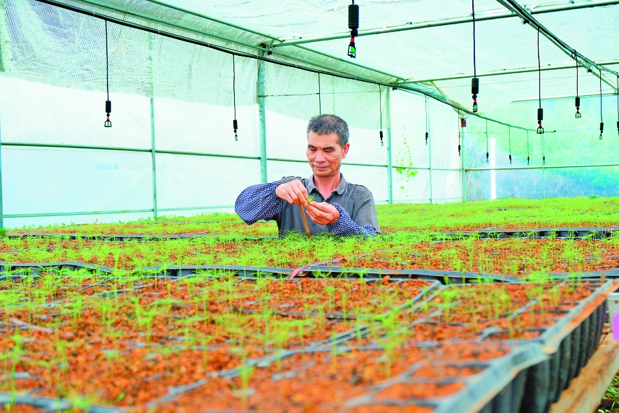 从催芽、移苗到温室培养、室外炼苗,再到上山造林,这里的每一株种苗都要经过精心培育。“温室共配备有4名工人,每日进行8小时管护,包括淋水、拔草、育苗、补苗及病虫害监测防治。目前仅新移栽的珍贵树种幼苗就有5万株。”陆文飞介绍,这里的种苗就像是刚出生的“娃娃”,为了提高它们的适应性和生长力,每个培育环节都得细致呵护。