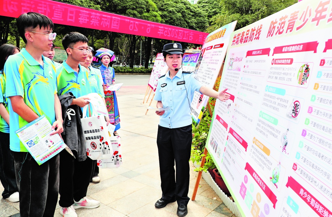 本报讯(记者    卢  飞    文/图)6月26日上午,由市扫黑除恶和反恐怖工作领导小组组织的2025年百色市“6·26”国际禁毒日主题宣传活动在百色森林公园举行。