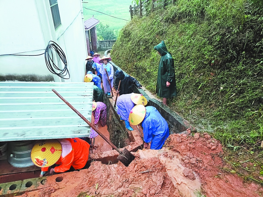 “山体塌方压到我家了,请求救援!”6月30日,西林县那佐苗族乡弄汪村那核屯农户韦彩新的房屋因山体塌方,被黄泥压了近一层。危急时刻,她通过电话和微信不断向外求救。接到求救信号后,该村党支部书记农凤华立即赶赴现场,组织乡亲们一起展开救援,经过2个多小时的奋战,大家把压在韦彩新房屋后墙的泥土搬运完毕,防止了更大事故的发生。