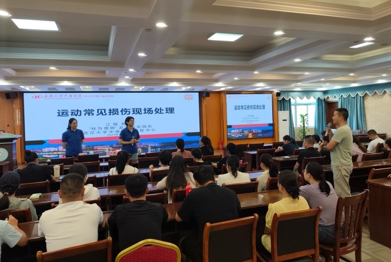 为护航百色市第八届运动会的医疗安全,7月12日,西林县特邀武汉大学中南医院急救中心专家团队开展专项培训,现场演示心肺复苏、骨折固定等急救技能,强调“快、准、稳”的赛事医疗处置原则,系统讲解中暑、肌肉拉伤等运动损伤的初步处理及转诊流程。
