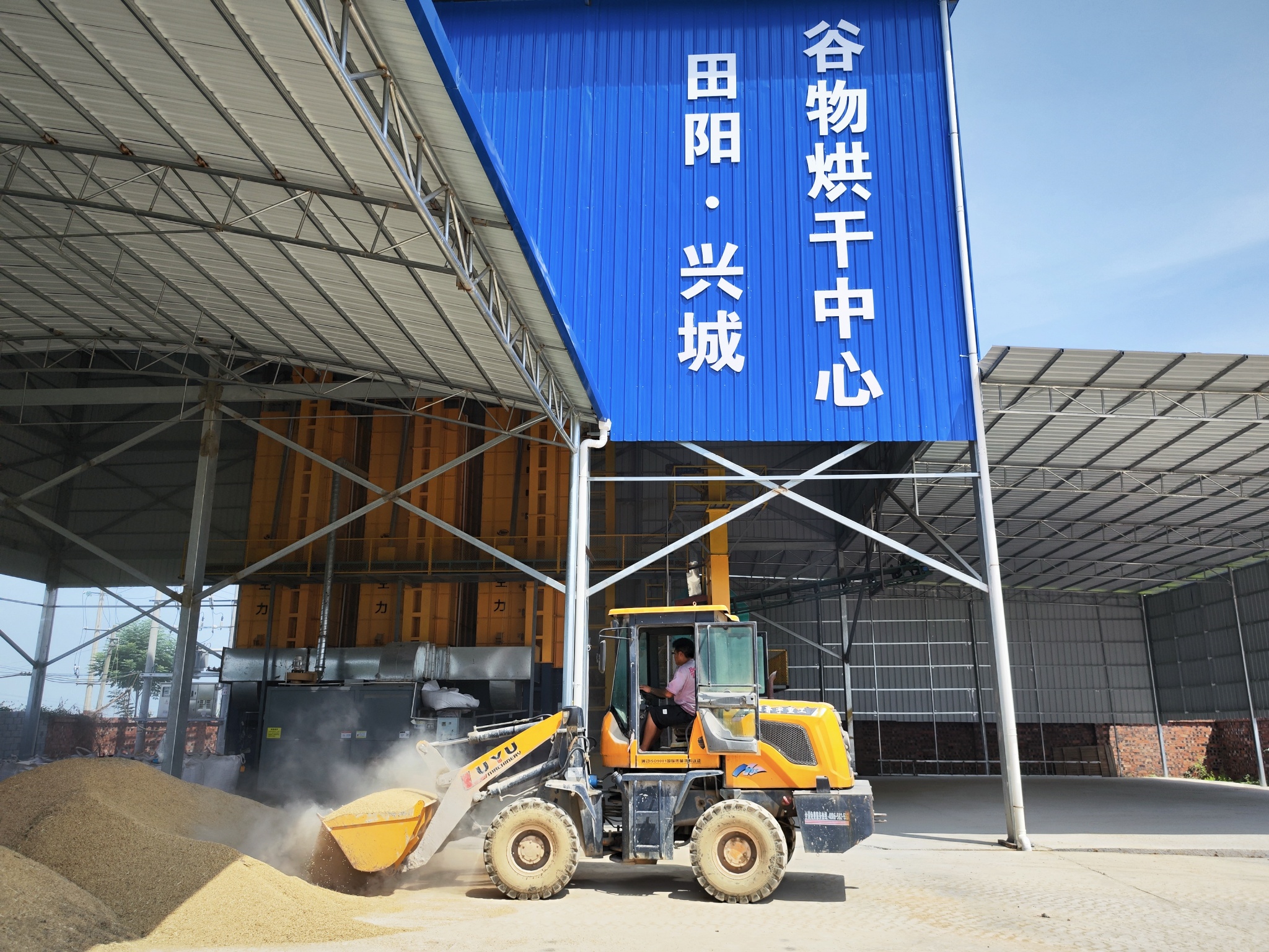 今年以来,田阳区十分重视粮食颗粒归仓提质增效工作,相关职能管理部门除在产粮大村田州镇兴城村指导建设谷物烘干中心外,还在其他产粮主要镇村指导建设谷物烘干中心。如今,除兴城村谷物烘干中心投产运行外,位于百育镇工业园区和位于田州镇凤马村的两个谷物烘干中心也在加速建设中,预计今年9底将建成,投产后每批次烘干量分别达1000吨、240吨,将从根本上解决产粮群众传统晾晒面临的场地不足、依赖天气、易发霉变等难题,不仅显著提升了粮食收储效率、降低了产后损失,也为保障该区粮食稳产提质、促进农民增收和壮大村集体经济提供了强有力的科技支撑,筑牢粮食安全“最后一公里”防线,为该区粮食颗粒归仓提供了高效保障。