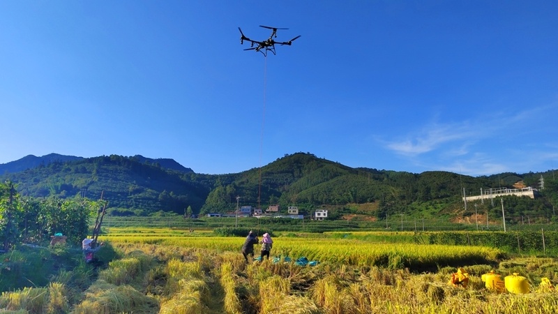“现在干活像走亲戚一样方便。”农机手岑美花边擦着收割机的刀片边说,“去年从田里扛稻谷到路边,再用车运回家,今年无人机直接把稻谷运到楼上,轻松多了。”