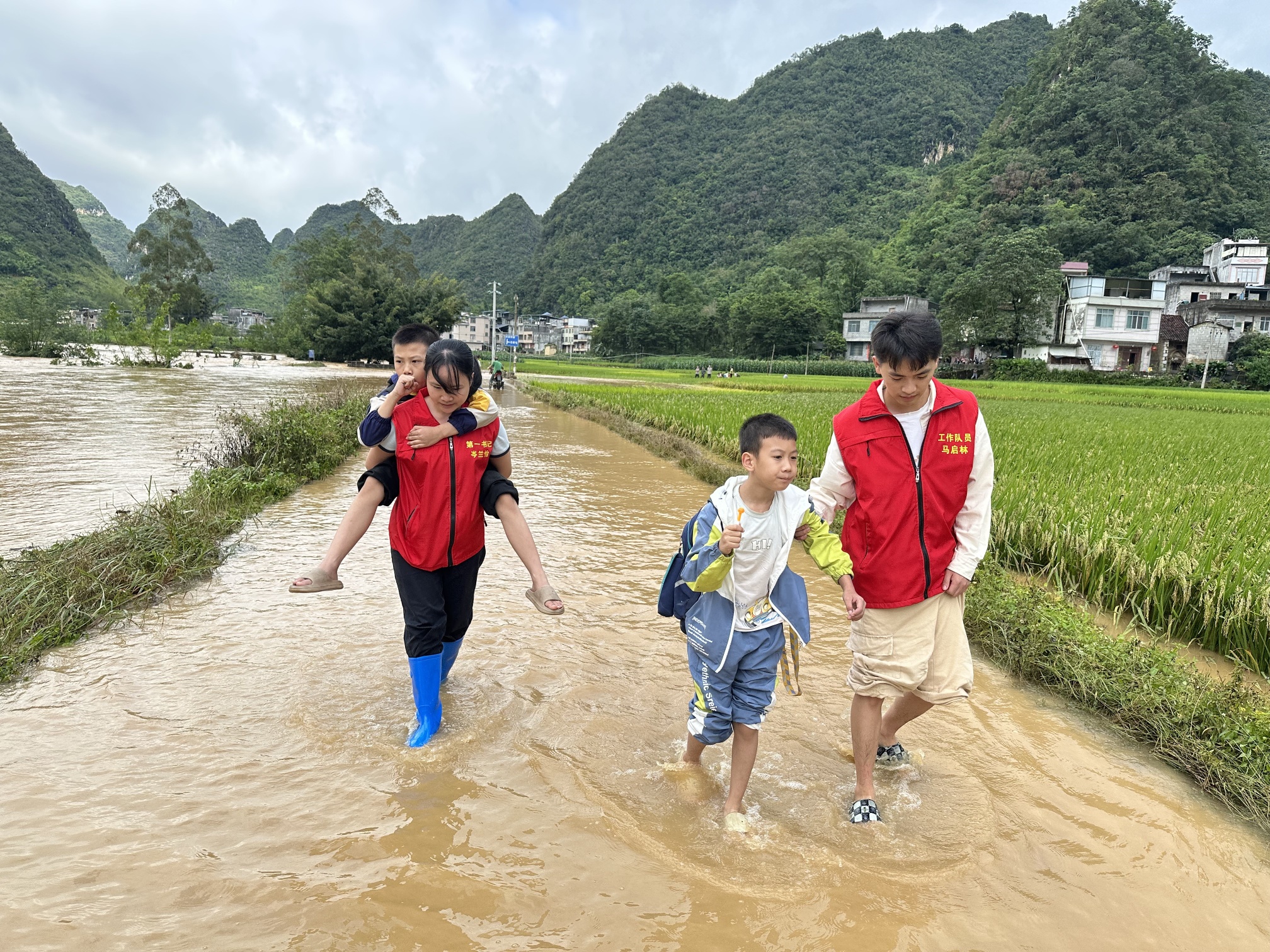 在农安村、驮良村等受灾严重的村子,放学回家的孩童们本满怀期待地迎接即将到来的国庆中秋假期,却被眼前的景象难住了,村道因暴雨侵袭已化作一片汪洋,积水漫过膝盖,阻断了归家的路。这群孩子多为留守儿童,父母常年在外务工,此刻面对湍急的水流,稚嫩的脸庞写满无助与焦虑。危难之际,周边村屯的共产党员们闻“汛”而动,迅速组建起一支特殊的“水上护送队”。农安村党支部书记沈秀梅毫不犹豫地驾驶自家车辆,在积水路段往返穿梭运送孩子;驮良村驻村第一书记岑兰怡早早守候在危险区域,俯身将一个个孩子稳稳背在背上,蹚着过膝的洪水稳步前行。众多党员也纷纷挺身而出,有的搀扶、有的背负,用身躯搭建起一条温暖安全的归家之路。230多名留守儿童在国庆节前夕平安返家。这场跨越洪流的爱心接力,不仅护佑了孩子们的安全,更在书写出基层党员干部暖心守护的动人篇章。