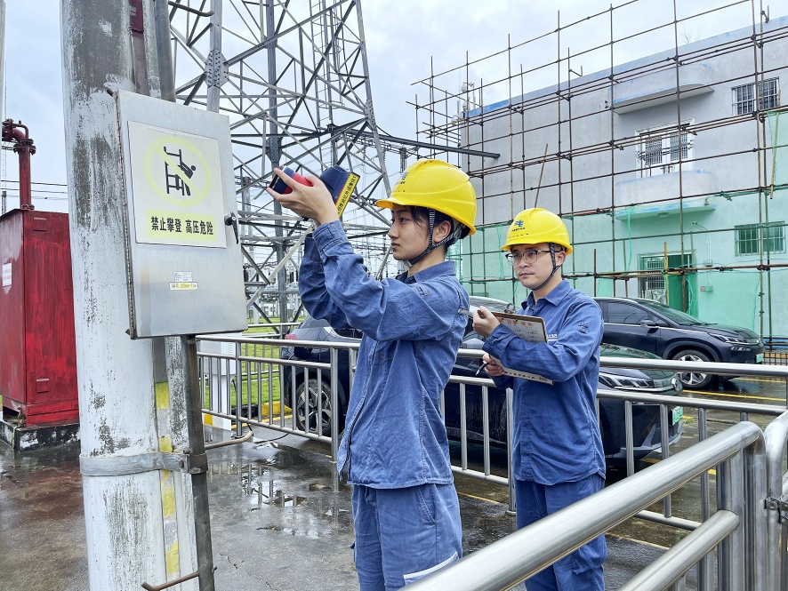 “双节”期间,用电负荷波动较大,电网安全运行面临更大挑战。10月3日早上7时许,沙坡变电站主控室的灯光便已亮起,陈思琪开始投入工作:她紧盯着监控屏幕上跳动的电气参数与设备状态,手中的笔不停记录着数据,丝毫不敢懈怠。