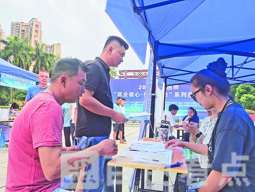 当天,田东县人民广场人头攒动,热闹非凡。在招聘区,不少企业的招聘台前挤满求职者,企业工作人员与求职者面对面交流,介绍岗位、薪资待遇等。在政策咨询区,工作人员担任“政策宣讲员”,为求职者讲解脱贫人口就业补贴、社保补贴、劳动维权等相关政策。除了现场招聘外,活动还开通线上招聘平台,方便求职者了解求职信息。