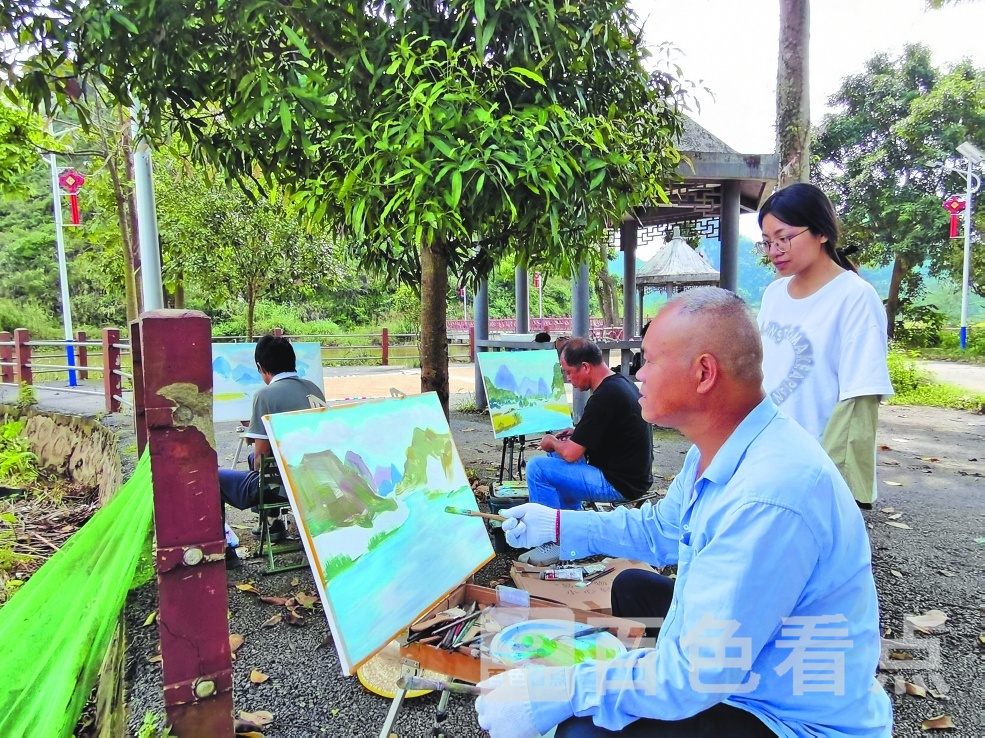 近日,在靖西市化峒镇三友村的千亩稻田里,收割机的轰鸣声与打谷机的运转声此起彼伏,奏响了丰收的乐章。在稻香中,由靖西市文联组织的20名壮族农民画家、美术家深入田间,开展“壮族画家聚 共绘丰收图”创作采风活动。