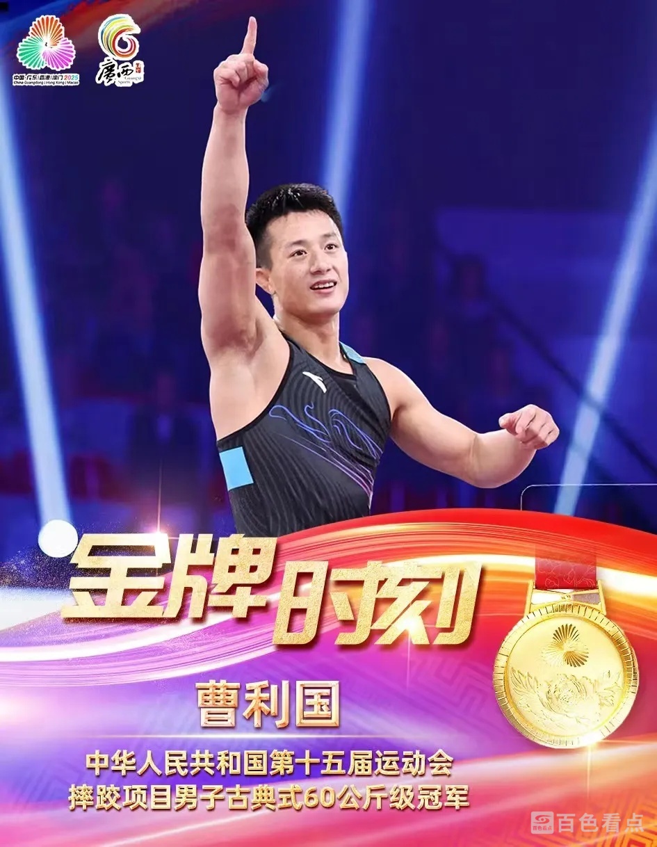 11月12日,在第十五届全国运动会摔跤男子古典式60公斤级比赛中,广西运动员曹利国顽强拼搏、沉着应对、勇夺冠军,为广西体育代表团斩获本届全运会第六枚金牌!