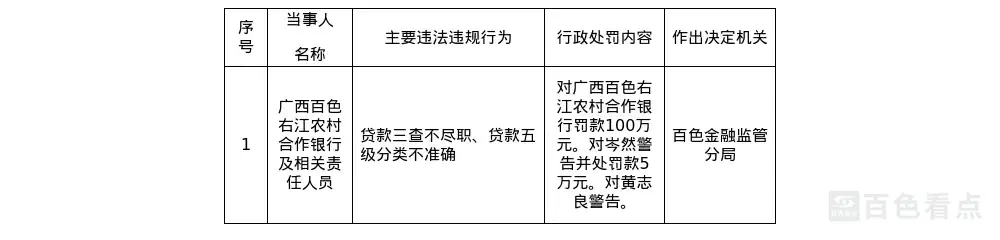 百色右江农合行被罚100万!贷款三查失职领罚单