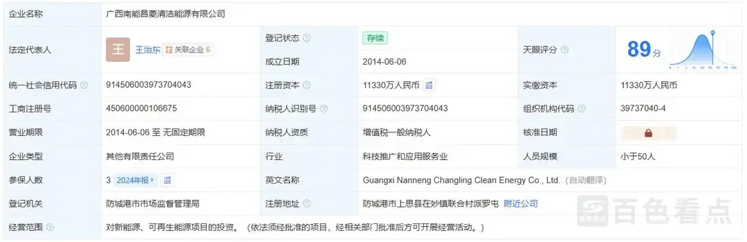 据了解,南能昌菱公司为南网能源下属子公司南方电网综合能源广西有限公司的控股子公司,成立于2014年6月6日,注册资本1.133亿元,经营范围为对新能源、可再生能源项目的投资,目前已处于停产状态。