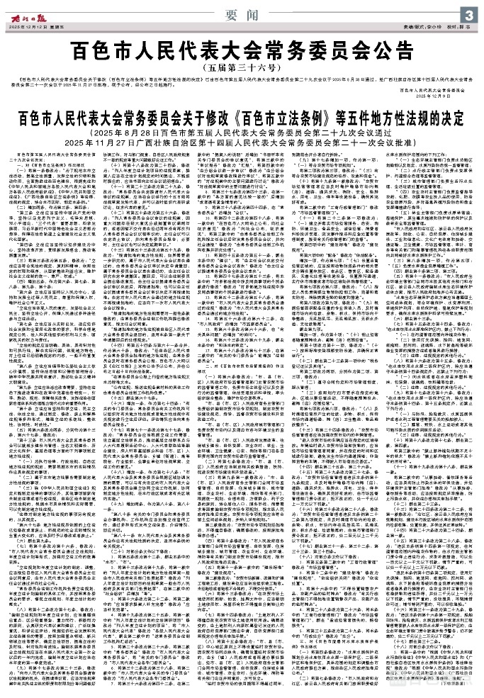 百色市人民代表大会常务委员会公告(五届第三十六号)