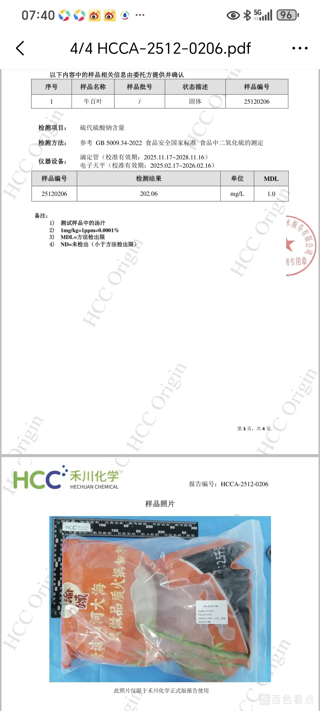 重庆市幺柒柒食品(重庆)有限责任公司生产的牛肚存在严重问题。经检测,该牛肚中非法添加了硫代硫酸钠,含量高达每千克202.06毫克。硫代硫酸钠是一种还原剂,商家添加它的目的是干扰对其他成分的检测。有迹象表明,这款牛肚中可能还添加了过氧化氢、甲醛等非法物质,硫代硫酸钠的添加使第三方检测结果受干扰,从而让其逃避法律制裁。