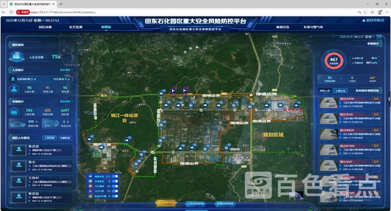 依托科技赋能,构建安全监管智慧中枢。面对危险化学品领域风险集中、传统监管手段不足等挑战,我市指导田东县投入2400万元打造园区一体化智能管控平台。该平台融合物联网、大数据等先进技术,集成了重大危险源监测预警、双重预防机制管控、特殊作业线上审批与监控、应急指挥等核心功能,实现了全天候、智能化监测预警。今年以来,平台发出有效预警信息超2000条,完成线上特殊作业审批5133次,并实现了对危化品车辆的全程闭环管理,极大提升了监管效能。同时,创新引入AI智能图像识别系统作为执法检查的“辅助能手”,可快速识别潜在风险隐患并提示法规依据,成功辅助排查各类隐患621条,成为基层干部的“随身专家智库”。