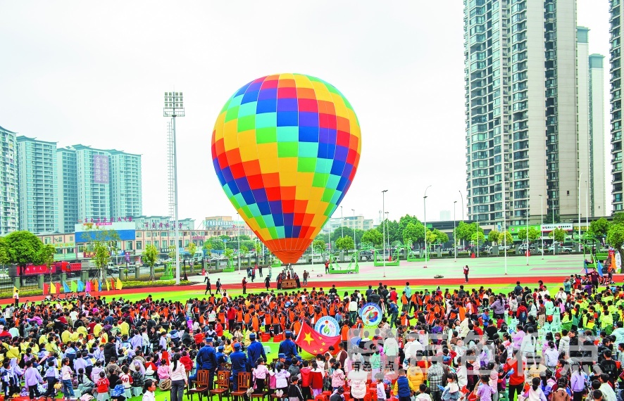 当天的开幕式上,科技元素成为亮点,在广西航管中心专业老师的指导下,热气球、无人机编队互动等轮番上演,学生们踊跃参与体验。而趣味亲子项目与田径赛事精彩纷呈,在亲子拔河、毛毛虫竞速、袋鼠跳等项目中,家长与孩子携手合作、其乐融融,田径赛场上,小运动员奋力拼搏,观众席上助威声此起彼伏。