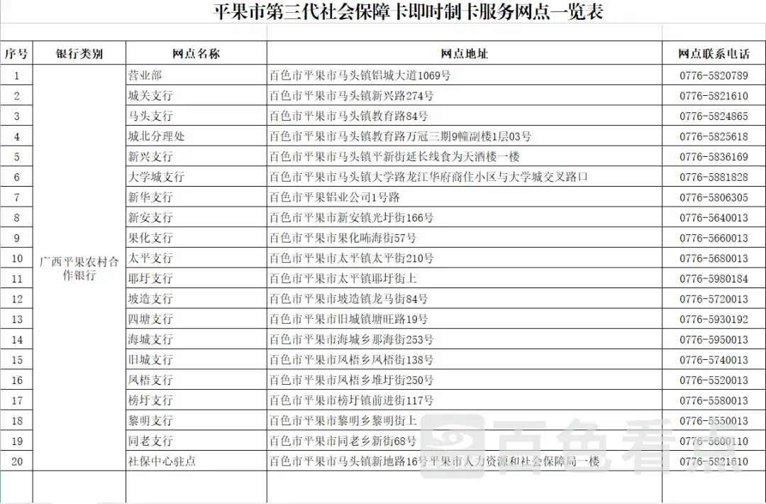 最新!平果市第三代社会保障卡即时制卡服务网点信息公布→
