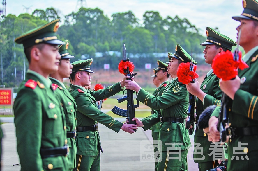 本报讯(记者 石广欢 通讯员 潘飞帆 唐明洋 温 博 文/图) 近日,武警广西总队百色支队2025年春季新兵入营后,正式开启第二阶段专业训练。为进一步强化新兵使命担当与责任意识,凝聚爱国强军力量,该支队举行新兵授枪仪式,以庄严仪式为新兵注入强军动力。