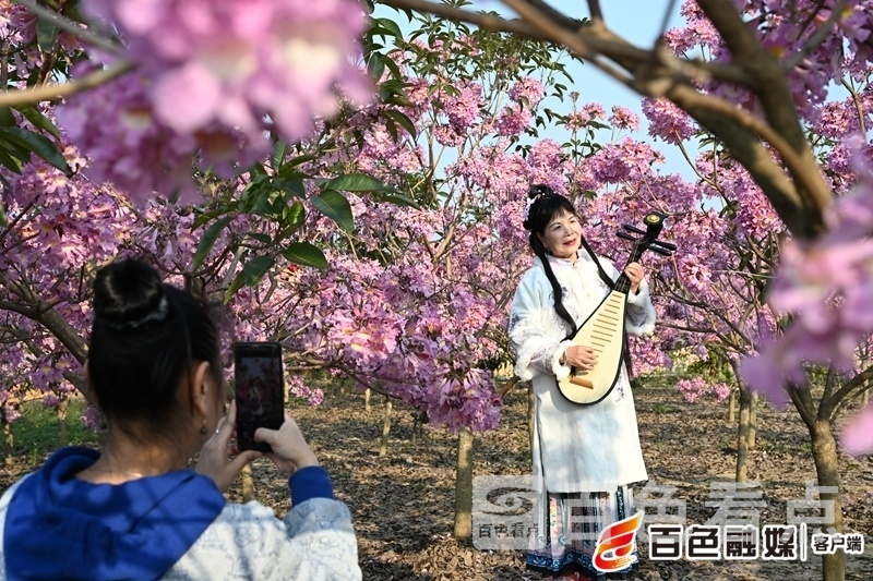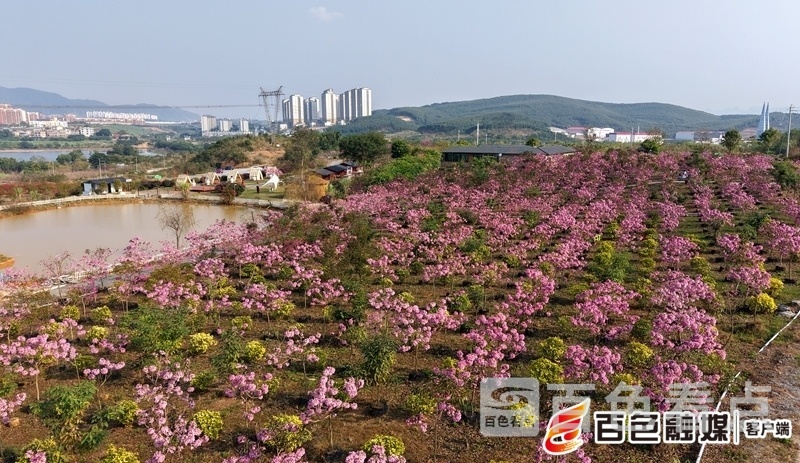 近日,在百色市百东新区的百东花海,2000多株紫花风铃木竞相盛放,蔚为壮观,为冬日的百色大地增添了浓墨重彩的生态亮色,成为市民游客休闲赏花的热门目的地。