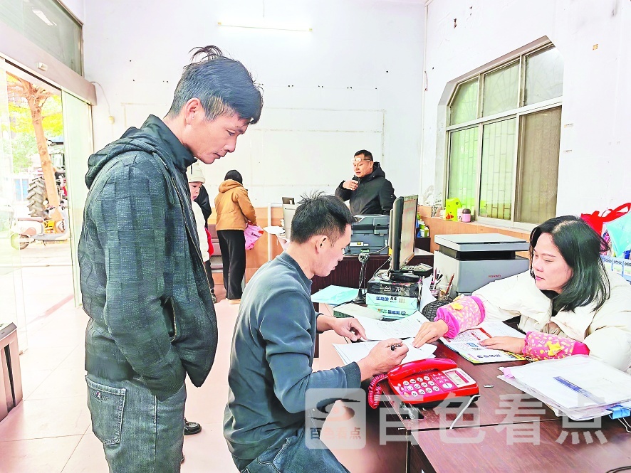 近日,农户在田阳区农业机械化服务中心业务受理窗口排队办理农机购置补贴,工作人员认真核验信息后精准录入补贴系统,确保补贴资金及时发放。