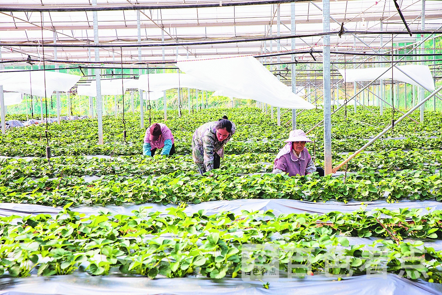 近日,田林县利周瑶族乡爱善现代农业庄园的智慧大棚内生机盎然,鲜红饱满的草莓缀满枝头。