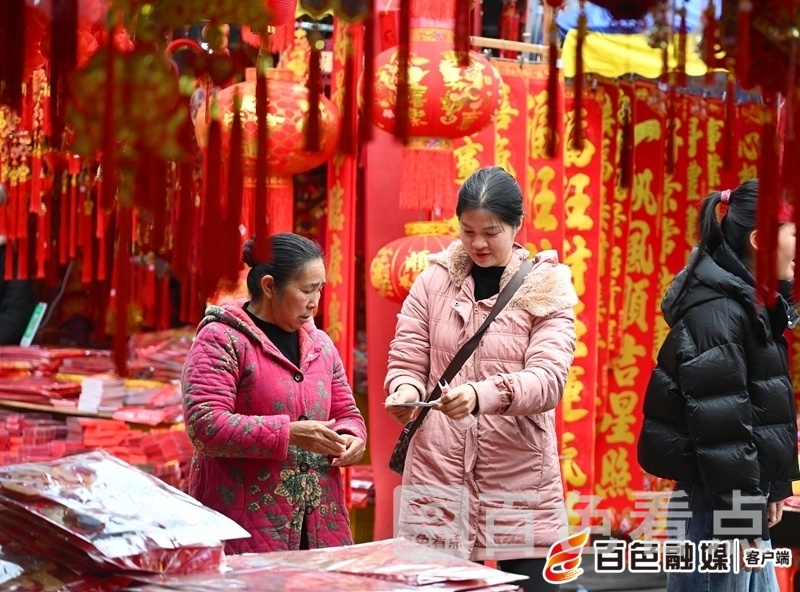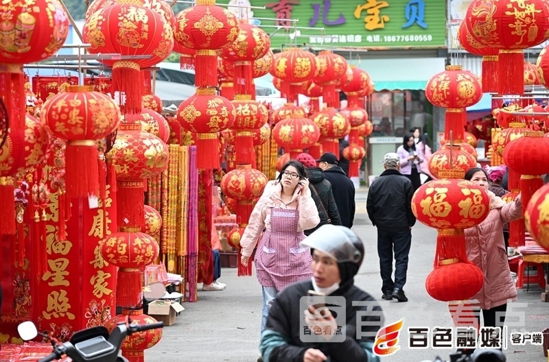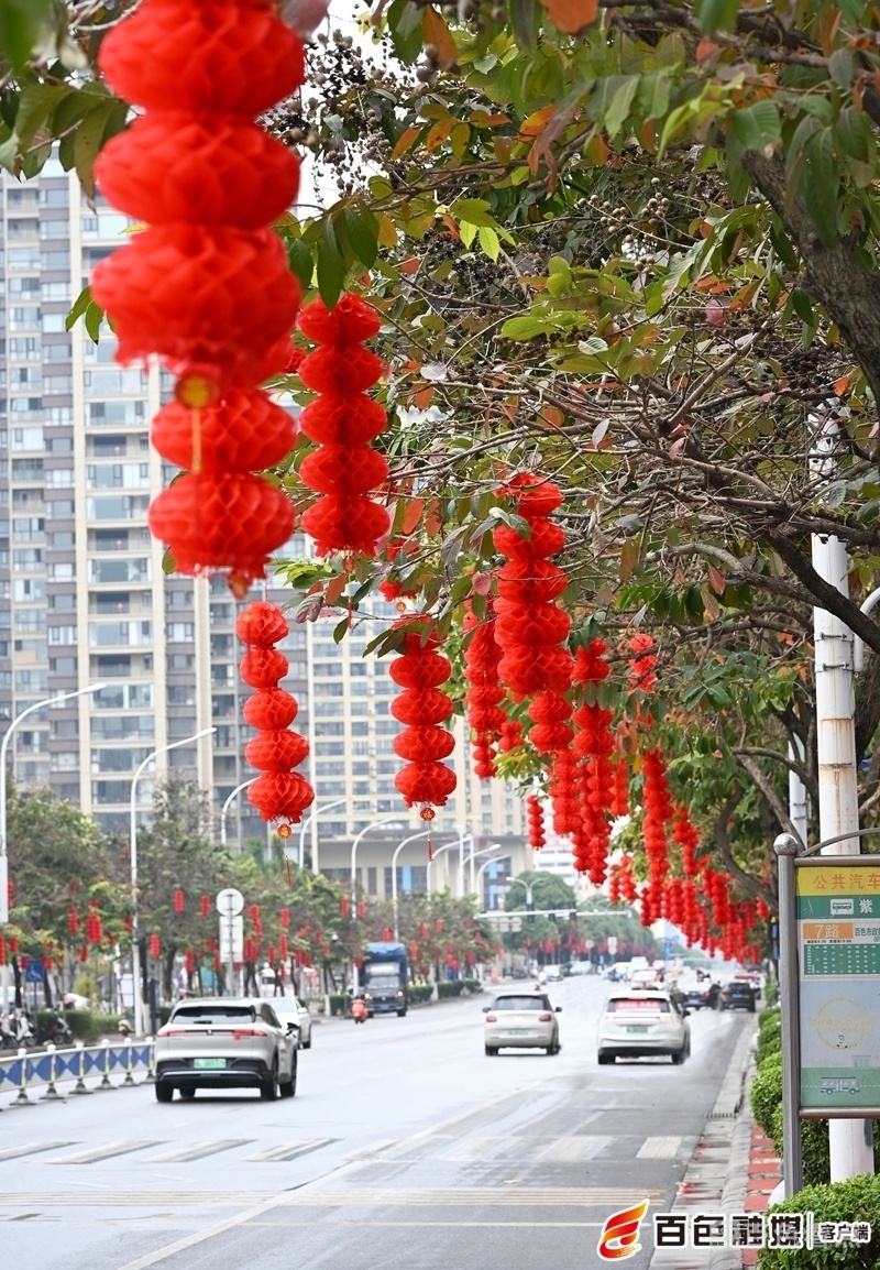 2月11日,右江区城区的道路两侧红灯笼高高挂起,年货市集暖意融融,春联墨香四溢。红火年味里藏着最浓的人间烟火,一灯一联映照着团圆期盼。跟着镜头感受中国年,遇见百色最动人的新春气象。