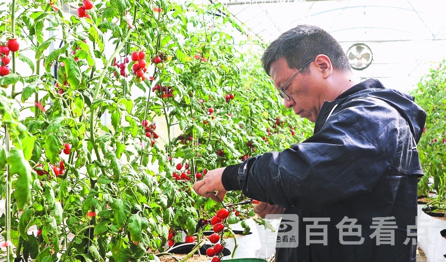春回大地,万物竞发。近日,笔者走进右江区龙川镇绿色生态蔬菜产业示范基地的温室大棚,只见一串串色泽艳丽、饱满圆润的小番茄挂满藤蔓,这里的优质小番茄正值成熟期,已批量抢“鲜”上市,成为消费者餐桌上的“春日限定”美味。
