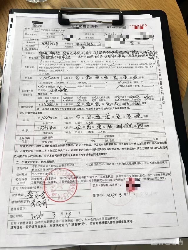 经受害消费者抱团统计,目前已有近10名购车人遭遇相同问题,大家多数人已完成付款,却无一能正常拿到车辆,部分人还额外支出了购置税、保险、临牌办理等费用,经济损失惨重。普通消费者面对突然跑路的商家和推诿拖延的厂家,投诉无门、维权艰难。