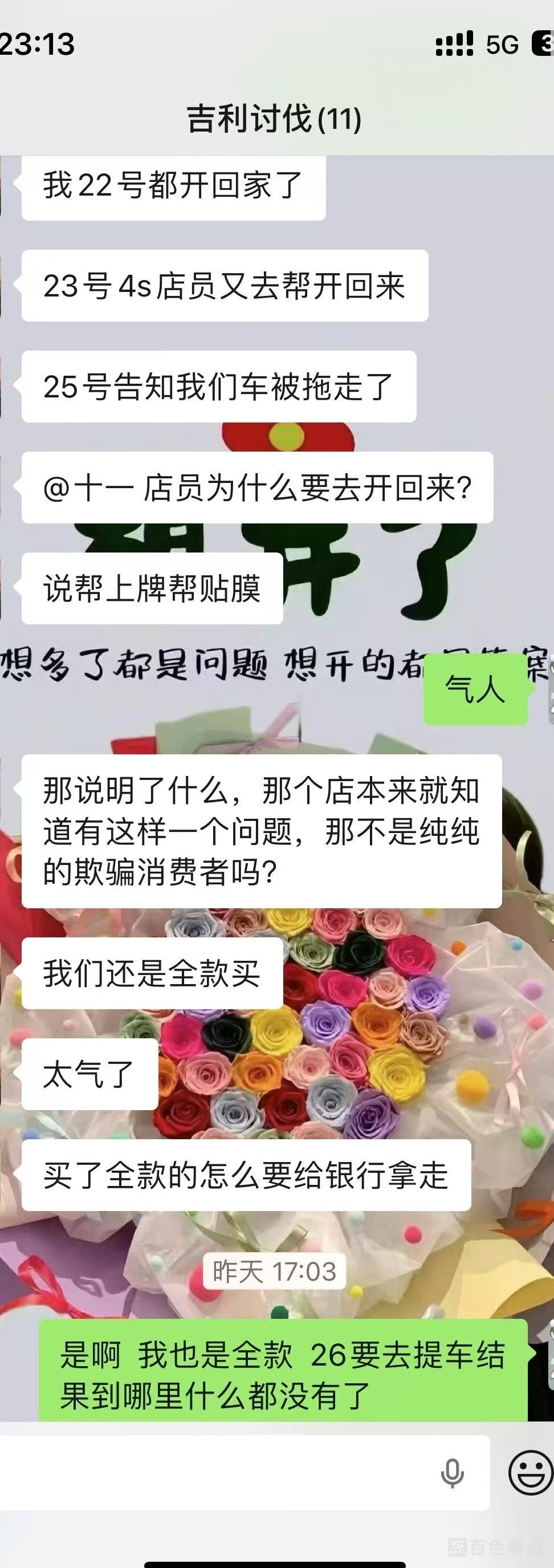 在此次维权群体中,还有一位消费者的遭遇更让人气愤。该车主本已顺利提车并将新车开回自家,却被4S店工作人员告知“车辆需返回店内统一办理上牌、贴膜服务”,轻信后将车交还给店员。可仅仅过了三天,车主便接到通知,自己的新车已被拖走,车辆彻底无法找回。至此,这位消费者不仅车没了,前期支付的购车款、相关手续费用也打了水漂,遭遇了比未提车车主更严重的损失。