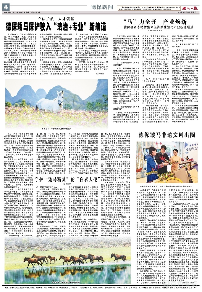 据了解,该《条例》的实施,不仅将为德保矮马的种质安全筑牢人才屏障,也将助力矮马文化产业与乡村振兴融合发展,让“矮马之乡”焕发新的生机与活力。
