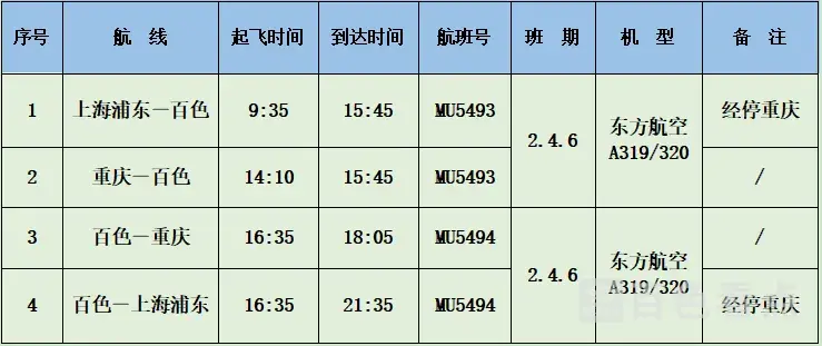 5月2日起恢复!百色-重庆-上海航线正式复航 配套机场巴士时刻同步公布