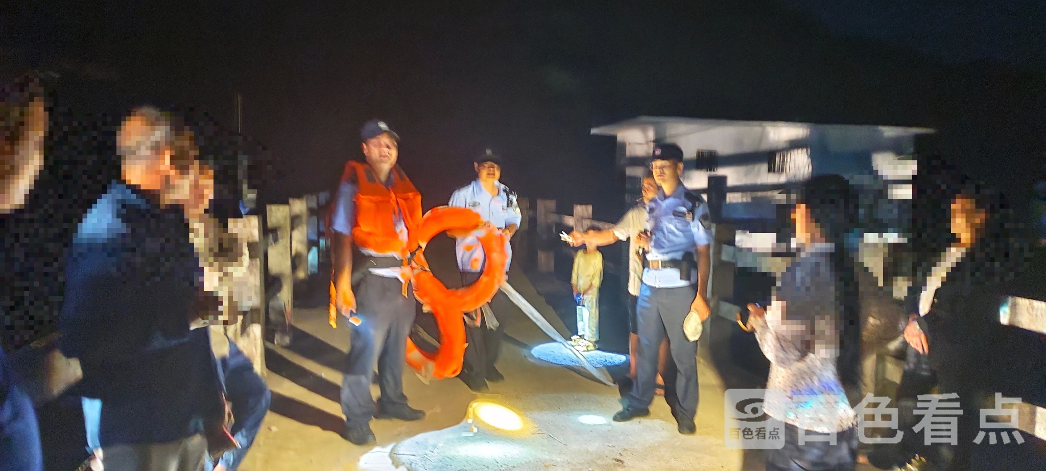 抵达现场后,民辅警发现事发时段夜色漆黑、野外视野极差,该名男子已走入水库河道中,河水已没过其胸脯。加之夜间河道水流情况复杂,男子随时有被水流冲走、发生溺水的危险,救援工作刻不容缓。