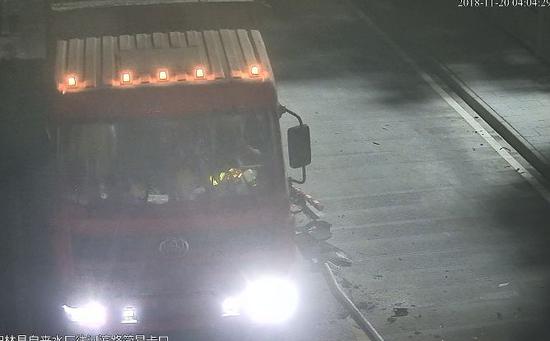 但是在田林县城有一辆大货车却故意遮挡号牌后强行通过城区交通限高杆,将限高杆撞坏后还直接驾车逃逸,结果不到5个小时就“栽”了…… 监控视频截图。